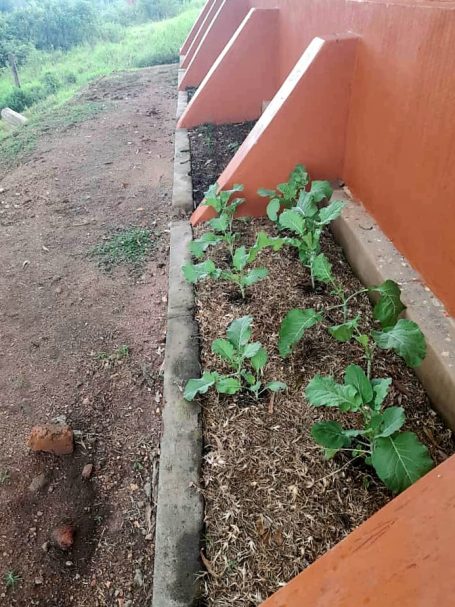 Die Rückwand des neuen Hauses dient seit kurzem als Gemüsebeet. Hier wachsen unter anderem Spinat, Zwiebeln, Kohl und grüner Pfeffer...