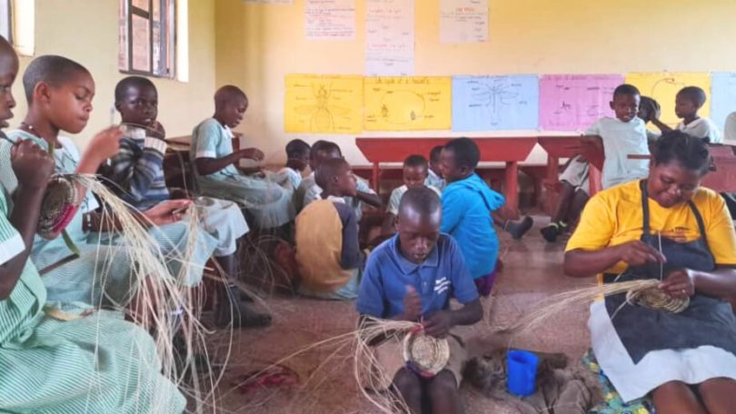 Die jüngeren Kinder gehen mittags zum Ausruhen meist nach Hause. Allen anderen stehen nach dem Mittagessen verschiedene Angebote offen. Eine AG beschäftigt sich mit Handwerkskunst. Hier entstehen gerade Schmuck und Körbe...